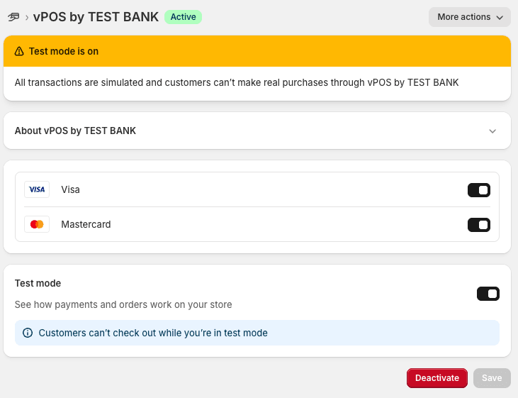 - Select Test mode to enable test mode for the plugin.